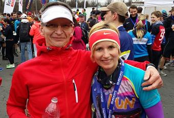 Aber unverhofft kommt oft: Unser Freund Kersten hatte sich kurzfristig überlegt, den 10er entspannt mitzulaufen (was ja normalerweise noch nicht mal eine Aufwärmdistanz für ihn ist). Da hatte er dann die spontane Idee, für mich den Hasen zu machen (obwohl ich ihm auf Bestzeitkurs eigentlich zu langsam war, haha). Mir wurde ein wenig mulmig, als Corinna mir Kerstens Idee eine Stunde vor dem Start mitteilte und ich hoffte ein wenig, dass das ganze nur eine fixe Idee war, da ich mich ja alles andere als fit fühlte. Aber einfach nicht zu viele Gedanken machen und Spaß haben - der Rest würde sich schon während des Laufes ergeben.