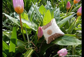 Die Stoffe waren schon bestempelt, wir mussten nur noch ausschneiden und konnten sofort mit dem Hand Nähen loslegen, innerhalb kürzester Zeit hatte dann jede der Teilnehmerinnen, dieses 6,5 x 6,5 cm große Nadelkisssen fertig gestellt.