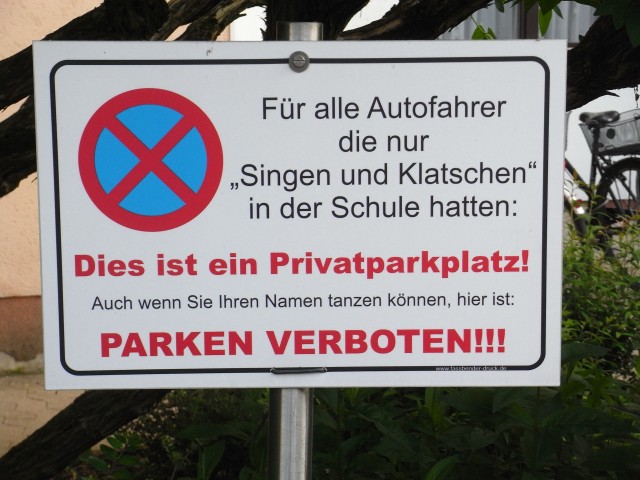 der Nachbar vom Block nebenan, eigentlich der Besserwisser schlechthin und einer der Obergötter des gesamten Wohnkomplexes (jedenfalls hält er sich dafür), macht bei mir einen auf dicker Freund, seit wir ein etwas anderes Parkverbotsschild auf unserem Stellplatz angebracht haben.