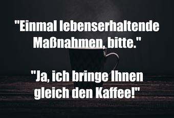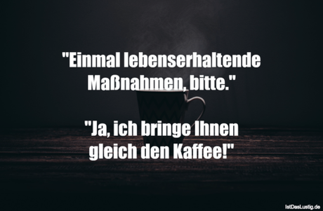 Auf Facebook teilen Vorige Folgende "Einmal lebenserhaltende Maßnahmen, bitte."... Autor des Artikels : istdaslustig Zum Original-Artikel "Einmal lebenserhaltende Maßnahmen, bitte." "Ja, ich bringe Ihnen gleich den Kaffee!" Hier geht es zum Artikel Mehr Lustiges auf www.istdaslustig.de Auf Facebook teilen Vorige Folgende Das könnte Ihnen gefallen Mehr