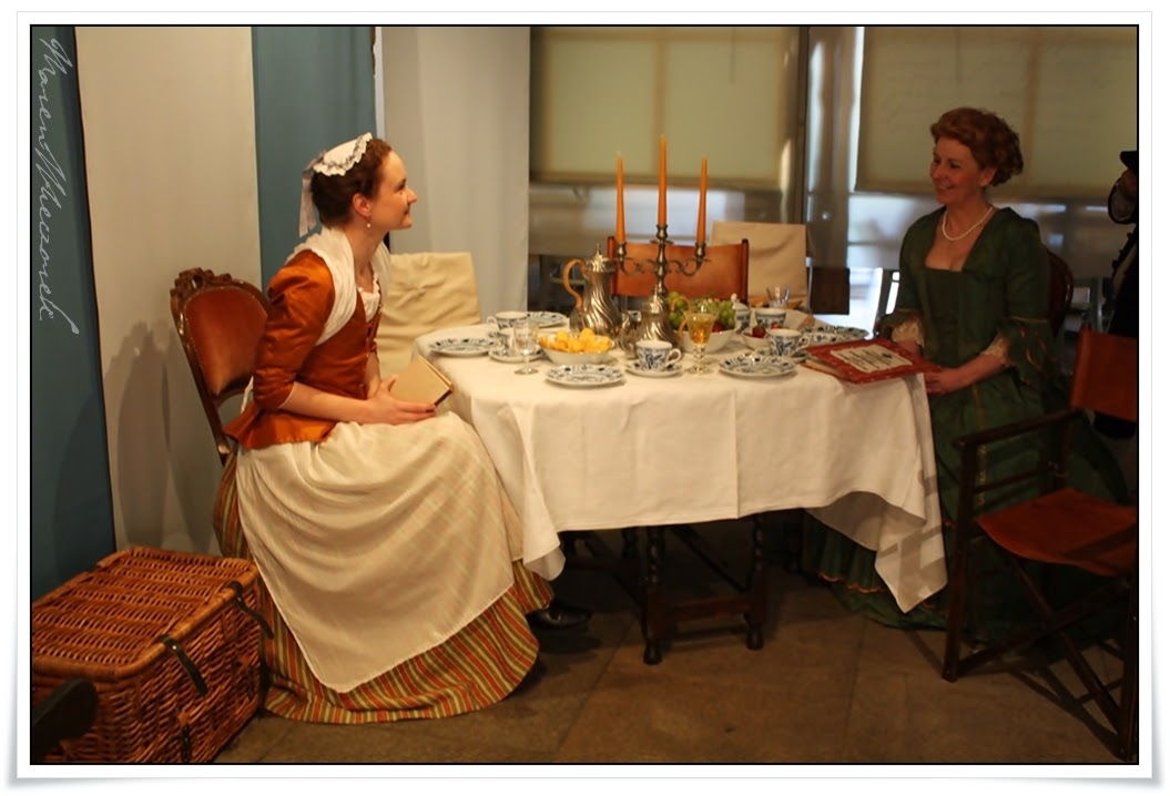 Wir vom 18. Jh war zu siebent und stellten eine Art Literarischen Salon in unserer "Nische" dar (auf den Bildern und auch vor Ort wirkte es auf mich ein wenig wie eine Theaterbühne).... eigentlich war es eine Art Kaffekränzchen und dass man in unserem Hobby keineswegs Gefahr läuft zu verhungern, wurde wiedereinmal aufs Anschaulichste bewiesen.