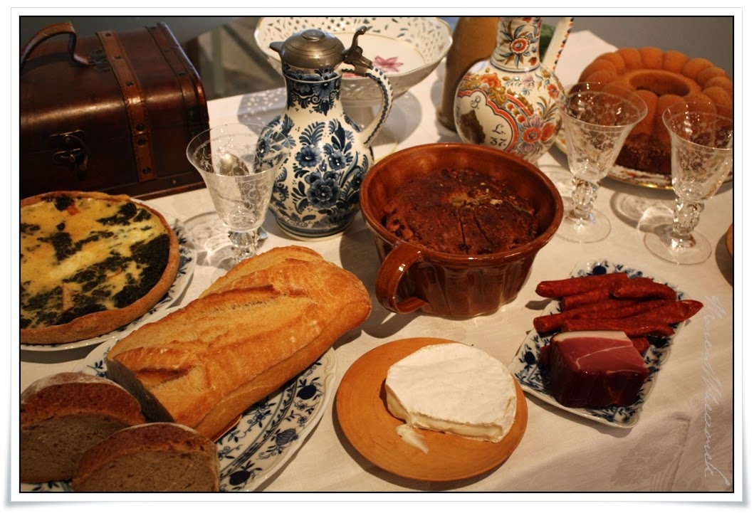Da man unmöglich den ganzen Tag an Kuchen mümmeln kann, gab es auch diverses Herzhaftes, wozu ich einen traditionellen Elsässer Speckguglhupf beisteuerte, dessen Rezept ich auf Facebook bereits versprochen habe...