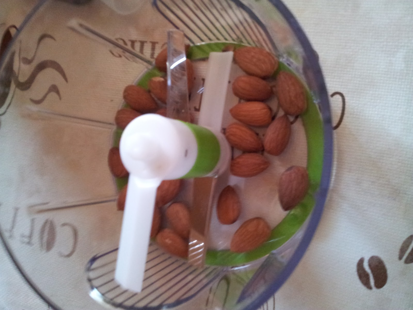 Mandeln zerkleinern, normalerweise eine echt schwierige Sache, den mit einem Messer klappt das nie und nimmer. Also habe ich es mit dem Turboline ausprobiert. Wie ihr sehen könnt hat das recht gut geklappt, nach 20 mal ziehen sah das ganze dann so wie auf diesem Bild aus. Jedoch klappt das nur mit einer handvoll Mandeln aufeinmal. Mehrere haben leider nicht geklappt und waren eher sehr unterschiedlich von der Größe her.