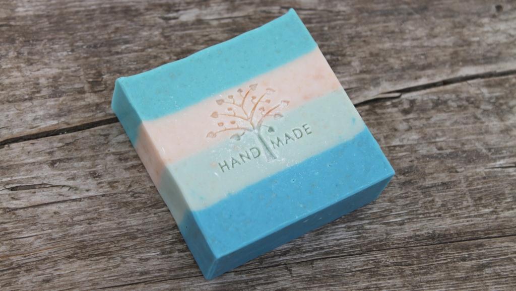 Reine Männersache Lauge aus Ziegenmilcheiswürfeln hergestellt. Leider hat das verseifte Milchfett ein paar hässliche orange Spuren in der Seife hinterlassen. Wie immer habe ich das PÖ Mediterraneo von Gracefruit verwendet. Gefärbt mit verschiedenen blauen Pigmenten.