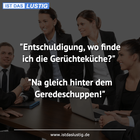 Auf Facebook teilen Vorige Folgende "Entschuldigung, wo finde ich die... Autor des Artikels : istdaslustig Zum Original-Artikel "Entschuldigung, wo finde ich die Gerüchteküche?" "Na gleich hinter dem Geredeschuppen!" Hier geht es zum Artikel Mehr Lustiges auf www.istdaslustig.de Auf Facebook teilen Vorige Folgende Das könnte Ihnen gefallen Mehr