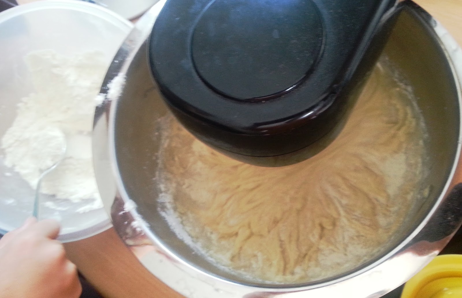 Nun im Wechsel Mehlgemisch und Milch einrühren und zu einem glatten Teig verrühren.