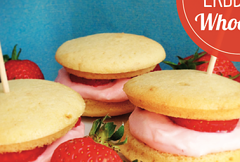 Die untere Whoopiehälfte mit der Creme bestreichen und mit Erdbeerscheiben belegen.
