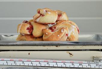 - Die Brioches auf einem Kuchengitter abkühlen lassen.- Für die Glasur etwas Zucker und Zitronensaft vermischen, kurz setzen lassen und auf die Brioches träufeln.