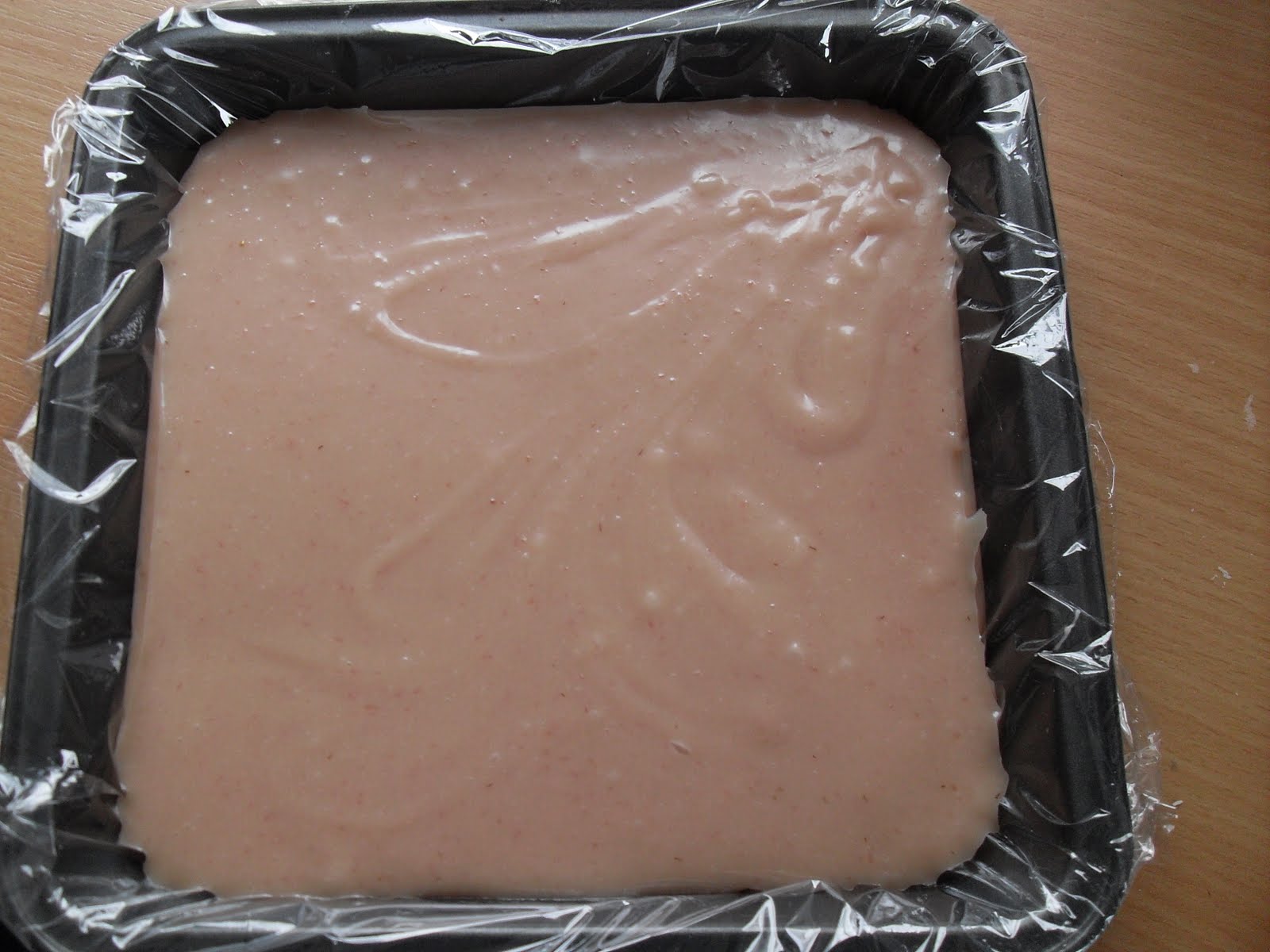 Die Masse wurde hinein gegossen und ich habe sie im kühlen Keller komplett durchkühlen lassen.