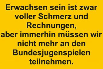Auf Facebook teilen Vorige Folgende Erwachsen sein ist zwar voller Schmerz und... Autor des Artikels : istdaslustig Zum Original-Artikel Erwachsen sein ist zwar voller Schmerz und Rechnungen, aber immerhin müssen wir nicht mehr an den Bundesjugenspielen teilnehmen. Hier geht es zum Artikel Mehr Lustiges auf www.istdaslustig.de Auf Facebook teilen Vorige Folgende Das könnte Ihnen gefallen Mehr