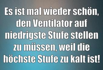 Auf Facebook teilen Vorige Folgende Es ist mal wieder schön, den Ventilator auf... Autor des Artikels : istdaslustig Zum Original-Artikel Es ist mal wieder schön, den Ventilator auf niedrigste Stufe stellen zu müssen, weil die höchste Stufe zu kalt ist! Hier geht es zum Artikel Mehr Lustiges auf www.istdaslustig.de Auf Facebook teilen Vorige Folgende Das könnte Ihnen gefallen Mehr