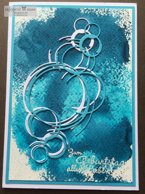Die Schrift in weiß embosst auf Aquarellpapier,