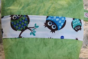Mitte April hat mich Annkatrin gefragt, ob ich ihr eine Kosmetiktasche in diesem Stil nähen kann.Statt gestrickte und gefilzte Wolle wollte sie gerne hellgrünen Stoff haben,der von einem Eulenstreifen geziert wird.Klar wollte ich ihr diese kleine Freude machen,war allerdings im Prüfungsstress und konnte die Kosmetiktasche erst Mitte/Ende Mai nähen.So musste sie ganz schön lange drauf warten, aber das Warten hat sich gekohnt :)