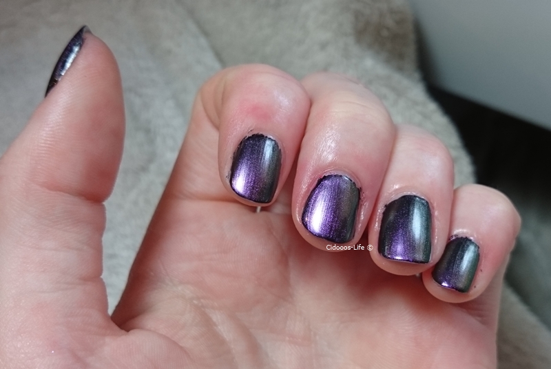 Ich habe versucht so viele Effekte wie möglich festzuhalten. Der Lack wechselt zwischen lila bis grün, teilweise ein bisschen blau und grau!