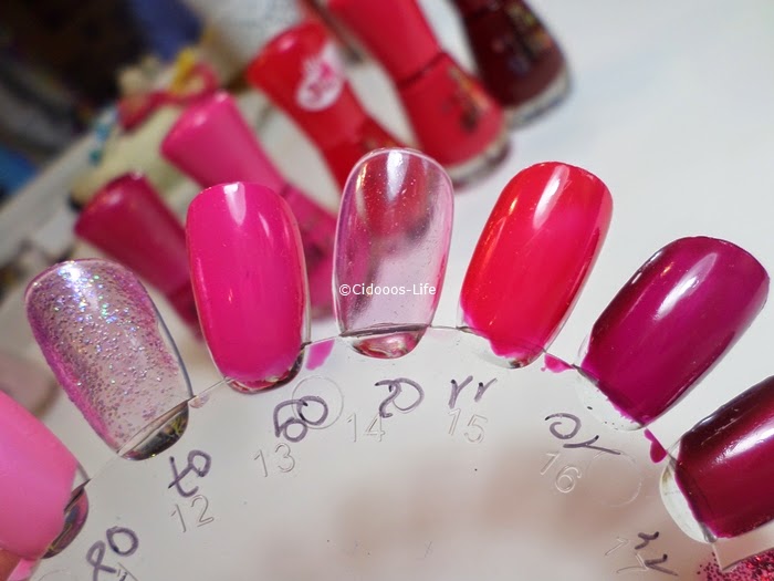 07 party princess ein Ton der auch wieder grobere Partikel enthält, die rosa eingefärbt sind09 Luck eine kräftigere Farbe mit guter Deckkraft ohne Schimmerpartikel oder ähnliches02 bubble gum ein Rot mit fast gar keiner Deckkraft, es ist sehr leicht rot und auf dem Nagelrad erkennt man leichte Schimmerpartikel11 4ever young ein rot-pink welches ebenfalls eine gute Deckkraft hat, ohne Schimmer oder Glitzer10 true love ein rot mit lila Einschlag, deckt gut enthält keinen Schimmer
