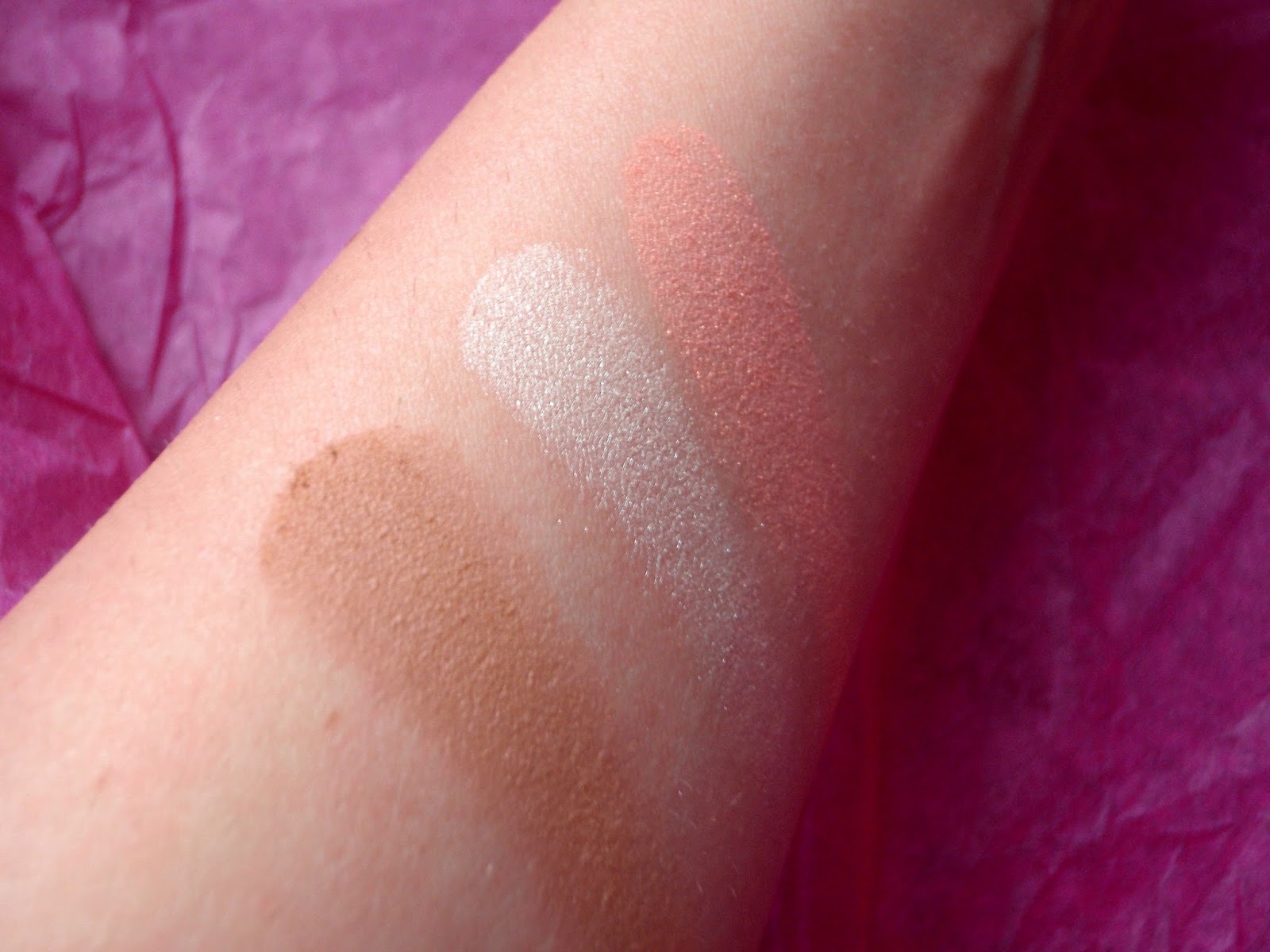 Mein Lieblingsteil des Gewinns...die Gorgeous glow face palette. In der Drogerie gibt es bisher selten solche Paletten, umso mehr habe ich mich über diese gefreut. Der Bronzer hat ein schönes, mattes braun, was nicht zu stark pigmentiert ist. Trotzdem butterweich, leicht zu schichten & verblenden. Der Highlighter ist leicht silbrig & super pigmentiert, zum Glück nicht zu glitzrig. Mein absoluter Liebling ist der Blush! Ein schönes pink, mit leichtem goldenen Schimmer. Er enthält quasi schon einen Highlighter & lässt die Wangen super schön strahlen.