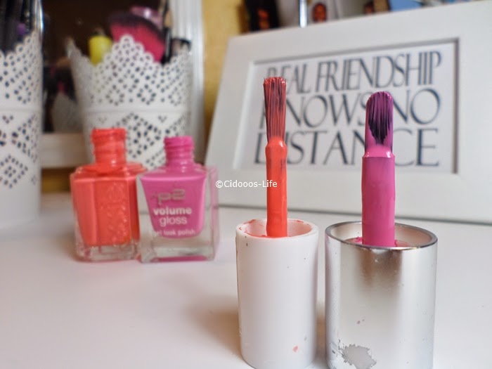 Ich bin ja bekennender Essie-Fan. Zwar sind Essie Lacke teuer, dennoch gönne ich mir hin und wieder einen und verwende sie am meisten von allen Lackmarken die ich hier habe. Aber muss es immer teuer sein? Ich denke, ich habe euch hier schon öfters gezeigt, dass man nicht immer unsagbar viel Geld ausgeben muss. Deswegen vergleiche ich heute Essie Lacke gegen die p2 Volume Glosse Lacke.Es fängt beim Preis an. Die Essie Lacke kosten 7,95€, die p2 Volume Gloss Lacke 1,95€. Ebenfalls der Inhalt ist recht ähnlich, die p2 Lacke enthalten 12ml, Essie 1,5ml mehr.