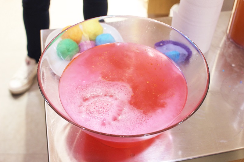 Bombe auf einmal in die Badewanne und sieh zu, wie sie mit süßer Farbe und