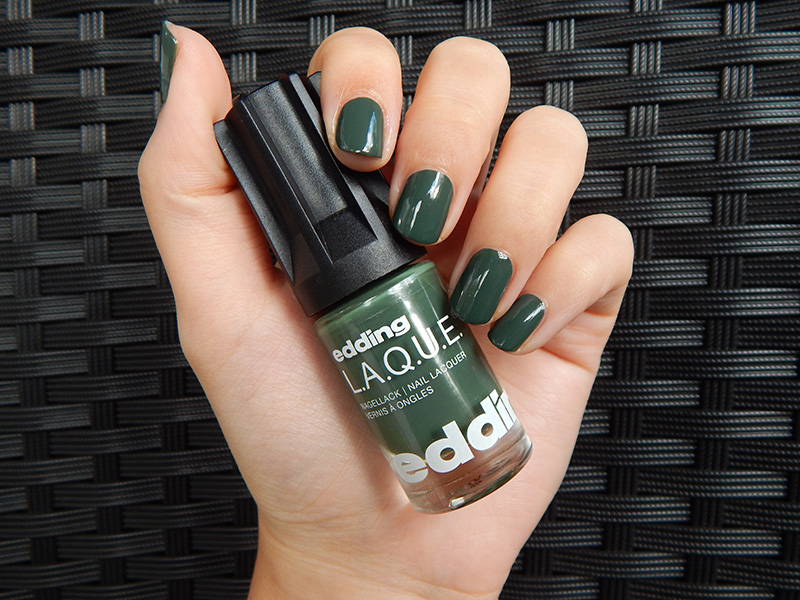 Ja, ihr habt richtig gelesen, Edding macht jetzt auch Nagellack. Seit wann das der Fall ist, kann ich euch gar nicht genau sagen, da es den Lack in meiner Stadt lediglich in der Drogerie Müller zu kaufen gibt. Dort verschlägt es mich extrem selten hinein, ich bin dann doch eher ein dm Fan :) Auf der Suche nach meinem alten Lieblings Make Up war ich dann aber mal drin, da sind mir dann auch die Lacke von Edding ins Auge gesprungen. Ich wollte mir sowieso einen dunkelgrünen Lack zulegen, der gut zu meinem neuen Shirt von Zalon passt (den Erfahrungsbericht dazu gibt es hier). Also hab ich mir gleich mal ein Exemplar davon mitgenommen. Preislich ist er mit knapp 8 Euro in der selben Klasse wie Essie.