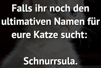 Auf Facebook teilen Vorige Folgende Falls ihr noch den ultimativen Namen für eure... Autor des Artikels : istdaslustig Zum Original-Artikel Falls ihr noch den ultimativen Namen für eure Katze sucht: Schnurrsula. Hier geht es zum Artikel Mehr Lustiges auf www.istdaslustig.de Auf Facebook teilen Vorige Folgende Das könnte Ihnen gefallen Mehr