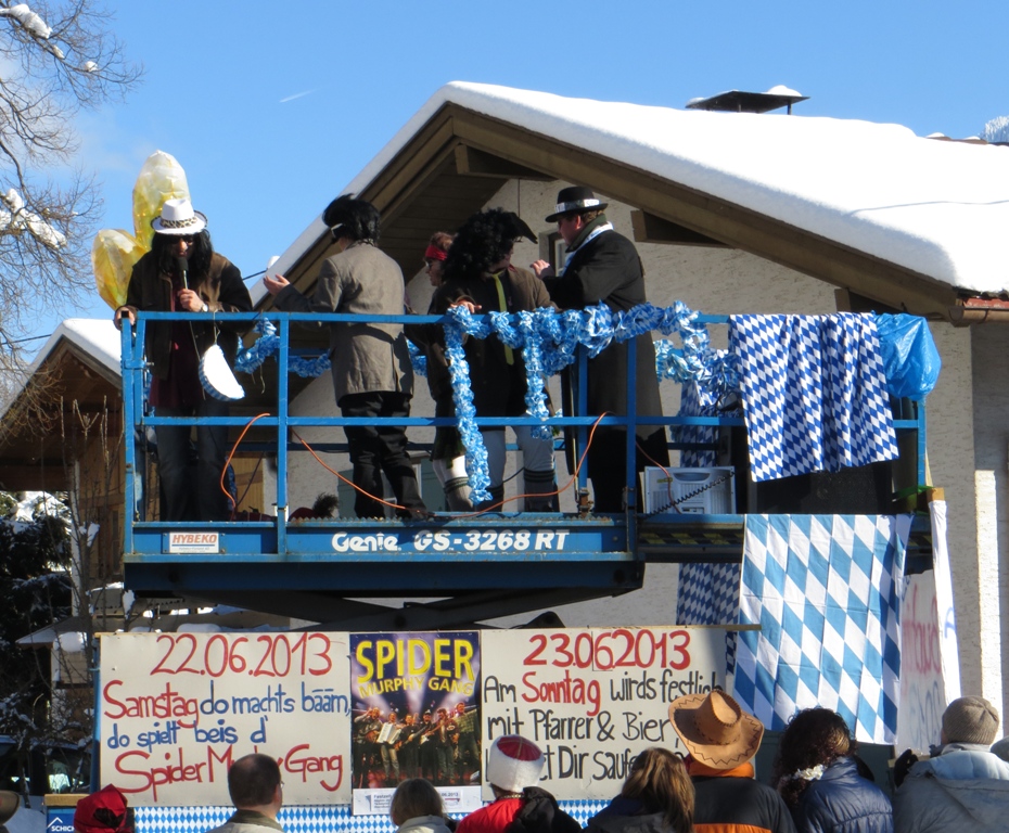 Im vorigen Jahr schneite es ziemlich heftig beim hiesigen Faschingsumzug (vgl. den Blott "Schneetreiben beim Schwangauer Faschingsumzug am 19.02.2012"). Dafür herrschte dieses Jahr ein wahrhaftes "Kaiserwetter" (oder sollte ich, hier in Bayern, und zudem noch in Schwangau, vielleicht lieber "Kiniwetter" sagen?).