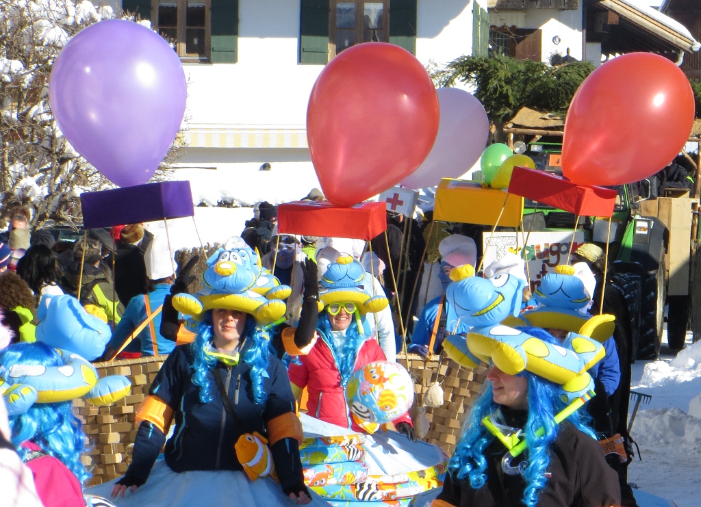 Und noch einige Impressionen vom heutigen sonnigen, fröhlichen und farbigen Faschingsumzug in Schwangau: