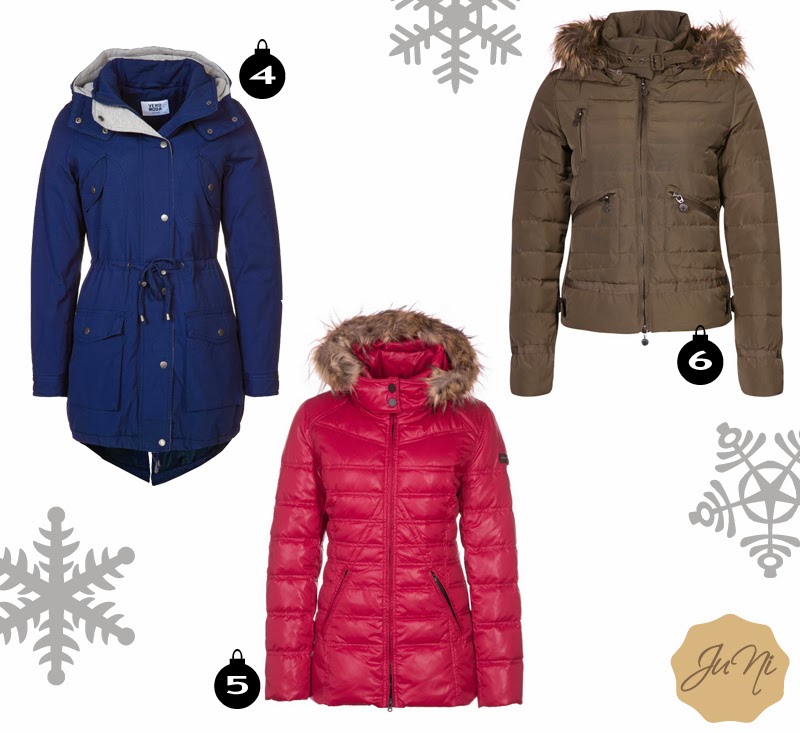 Vier | Fünf | SechsIch kaufe mir nicht jedes Jahr eine neue Winterjacke, sondern gebe lieber "etwas mehr" Geld aus und kauf mir dann eine, die ein paar Jahre hält. Gerne habe ich dann noch eine (oder zwei oder drei) "Ersatzjacke" im Schrank hängen. Wichtig ist mir bei der Jacke, dass sie schön warm hält (oh, welch Wunder^^), dass sie viele Taschen (besonders für Tempos, Wärmekissen und Halsbonbons) hat und auch eine Kapuze ist nicht schlecht.Und natürlich muss mir die Jacke auch gefallen! :)Wie gefällt euch denn meine Auswahl? Wäre etwas für euch dabei?Kommt gut durch die kalten Wintertage, eure