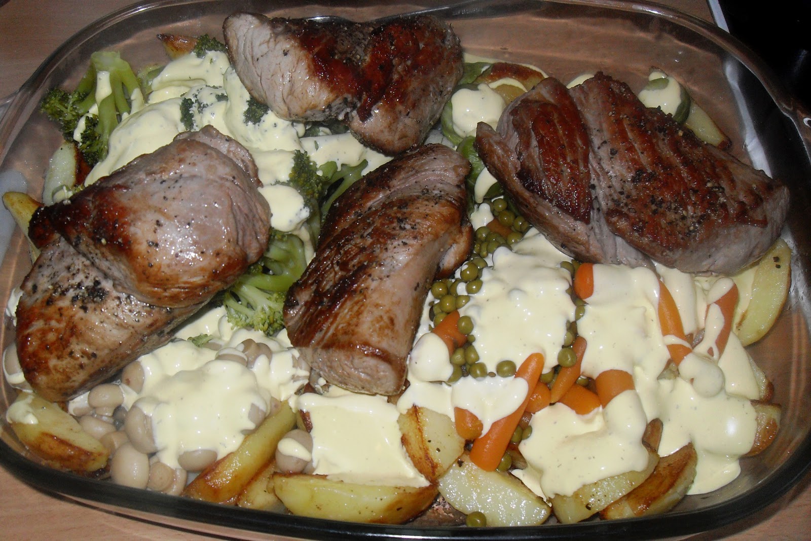 Anmerkungen:- ein leckeres Gericht für alle Sauce Hollandaise Fans :-)- das Gemüse kann frei gewählt werden und man kann so das Gericht immer wieder anders gestalten (im Frühjahr nehme ich gerne junge Möhren und Spargel dazu)- gerade für Kinder toll, da es ja oft Diskussionen gibt wer was mag und wer nicht. So ist für jeden Geschmack etwas dabei- schmeckt auch gut mit Hähnchen- oder Rinderfilet (auch gemischt mit Schweinefilet möglich)- kennengelernt habe ich dieses Gericht in einem Restaurant und habe es dann irgendwann nach eigenem Gusto nachgekocht- lässt sich auch gut in einer Fettpfanne für größere Anlässe zubereiten