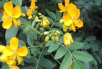 Die Zimtkassie (Chinesischer Zimtbaum, Gewürzrinde, Kaneel) im Garten steht schon einige Zeit in voller Blüte – mit seinen gefiederten Blättern ein echter Hingucker in Goldgelb und Grün. Die Rinde des Chinesischen Zimtbaums wird auch als Zimtersatz genutzt, wobei es sich genau genommen sogar um ein eigenes Gewürz handelt.