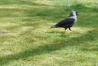 Der kleine Rabenvogel ist überall präsent – insbesondere an Orten, wo schon mal Futter zu Boden fällt. Dieser Vogel hier patroulliert auf der Wiese im Vorgarten der Massagepraxis Schult gegenüber einem Thai-Schnellimbiss.