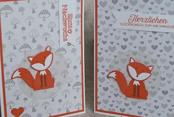 Für meinen Stand am nächsten Markt (Samstag in Bayerbach) habe ich noch ein paar Kärtchen gewerkelt - die Füchse sind einfach zu putzig, die mussten mal wieder auf eine Karte.
