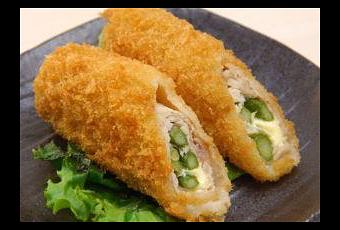 Frittierte Nikumaki mit Spargel-Käse Füllung