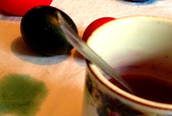 Einen Großteil des Osterwochenendes habe ich in Brandenburg bei der Familie meines Freundes verbracht. Am schönsten finde ich Ostersonntag immer das Eierfärben. Das wird schon seit Jahrzehnten bei meinen Schwiegergroßeltern auf dem Land (mit eigenen Hasen, Hühnern und damit Eiern etc.) veranstaltet. Ich mag das sehr, vor allem die ganzen Färbeutensilien, denen man ihr Alter echt ansehen kann. Voll retro ... irgendwie ... toll :-)