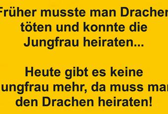 Auf Facebook teilen Vorige Folgende Früher musste man Drachen töten und konnte die... Autor des Artikels : istdaslustig Zum Original-Artikel Früher musste man Drachen töten und konnte die Jungfrau heiraten... Heute gibt es keine Jungfrau mehr, da muss man den Drachen heiraten! Hier geht es zum Artikel Mehr Lustiges auf www.istdaslustig.de Auf Facebook teilen Vorige Folgende Das könnte Ihnen gefallen Mehr