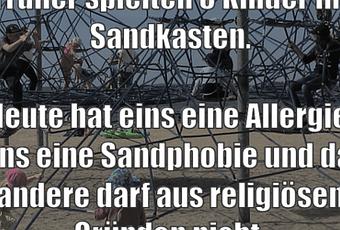 Auf Facebook teilen Vorige Folgende Früher spielten 3 Kinder im Sandkasten. Heute... Autor des Artikels : istdaslustig Zum Original-Artikel Früher spielten 3 Kinder im Sandkasten. Heute hat eins eine Allergie, eins eine Sandphobie und das andere darf aus religiösen Gründen nicht. Hier geht es zum Artikel Mehr Lustiges auf www.istdaslustig.de Auf Facebook teilen Vorige Folgende Das könnte Ihnen gefallen Mehr