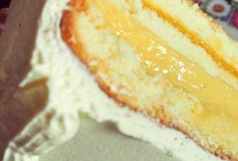 - Auf dem zweiten Boden wird nun die Mango-Vanillecreme verteilt.