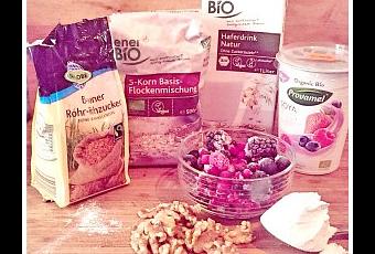 - Sojajoghurt in der Geschmacksrichtung der Wahl (bei mir war es ein Beerenjoghurt – Naturjoghurt geht natürlich auch)
