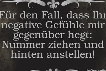 Auf Facebook teilen Vorige Folgende Für den Fall, dass Ihr negative Gefühle mir... Autor des Artikels : istdaslustig Zum Original-Artikel Für den Fall, dass Ihr negative Gefühle mir gegenüber hegt: Nummer ziehen und hinten anstellen! Hier geht es zum Artikel Mehr Lustiges auf www.istdaslustig.de Auf Facebook teilen Vorige Folgende Das könnte Ihnen gefallen Mehr