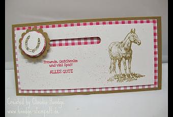 Heute zeige ich euch eine Kullerkarte, die ich für eine bald sechsjährige Pferdenärrin gestempelt habe.