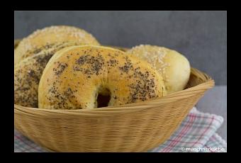 Im 200 °C Ober-/Unterhitze vorgeheizten Backofen ca. 25 Minuten backen, bis die Bagels eine schöne Farbe angenommen haben.