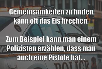 Auf Facebook teilen Vorige Folgende Gemeinsamkeiten zu finden kann oft das Eis... Autor des Artikels : istdaslustig Zum Original-Artikel Gemeinsamkeiten zu finden kann oft das Eis brechen. Zum Beispiel kann man einem Polizisten erzählen, dass man auch eine Pistole hat... Hier geht es zum Artikel Mehr Lustiges auf www.istdaslustig.de Auf Facebook teilen Vorige Folgende Das könnte Ihnen gefallen Mehr