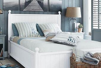 schlafzimmer maritim einrichten gestalten & dekorieren deko möbel gardinen tagesdecken betten bettwäsche einrichtung kommode.