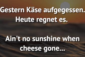 Auf Facebook teilen Vorige Folgende Gestern Käse aufgegessen. Heute regnet es.... Autor des Artikels : istdaslustig Zum Original-Artikel Gestern Käse aufgegessen. Heute regnet es. Ain't no sunshine when cheese gone... Hier geht es zum Artikel Mehr Lustiges auf www.istdaslustig.de Auf Facebook teilen Vorige Folgende Das könnte Ihnen gefallen Mehr