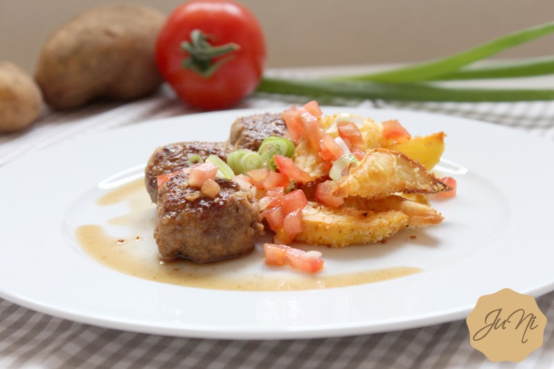 Beim Durchblättern bin ich dann auch direkt aufs Titelrezept gestoßen und musste es einfach nachkochen: Glasierte Fleischbällchen mit Chilikartoffeln und Tomatensalsa - hört sich das nicht phantastisch an?
