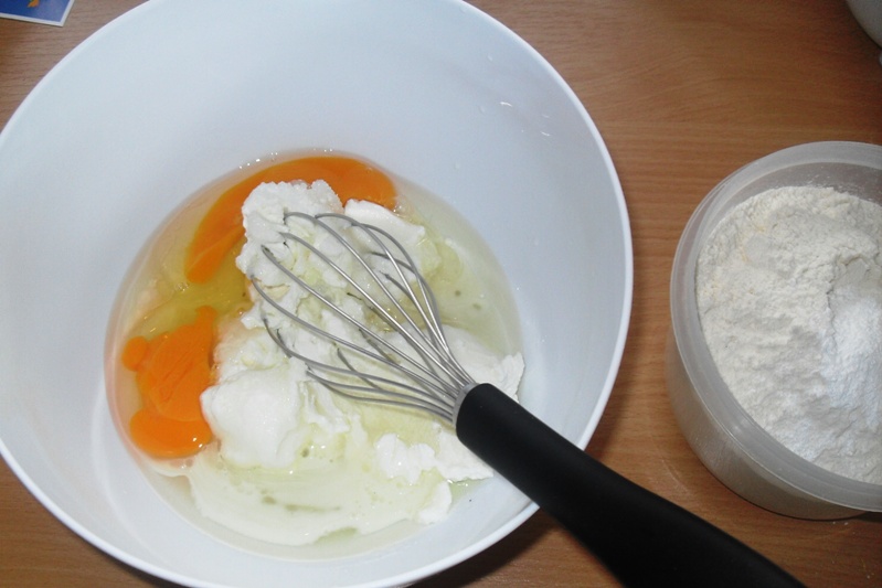 Zutaten:400 g Mehl1/2 Päckchen Backpulver80 g Zucker2 Eier6 EL Milch8 EL Öl200 g Quark4 Tropfen VanillearomaZutaten:Mehl und Backpulver mischen und zur Seite stellen.Die restlichen Teigzutaten in eine Schüssel geben und zu einer glatten Masse verrühren.