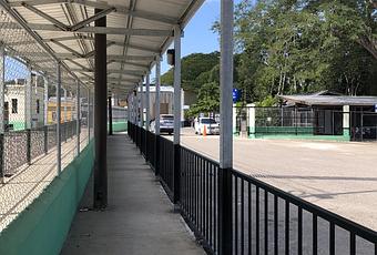 Die Ausreise aus Belize erfolgt in zwei Schritten – dem Zahlen der Ausreisegebühr und der eigentlichen Migration. Beides befindet sich nebeneinander in einem unscheinbaren finsteren Flachdachgebäude direkt im Anschluss an Parkplatz.