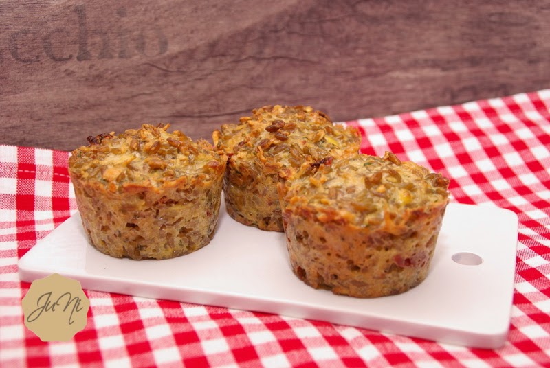 Zutaten für 6 Muffins:200 g ganzer Grünkern1 Zwiebel3 EL Haferflocken50 g gemahlene Mandeln100 g geriebener Käse3 Eier1 Handvoll getrocknete TomatenSalz, Pfeffer, Chilliflocken, Petersilie