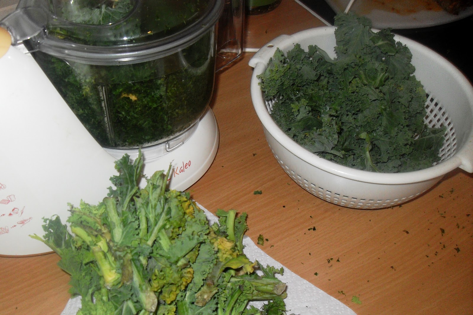 Ich muss dazu sagen, ich kaufe maximal zwei Mal im Jahr Grünkohl, da ich die einzige hier bin, die Grünkohl liebt! Da ich bei unserem Edeka Händler daher auch schon seit Jahren kaufe, habe ich beim Einkauf auch gar nicht darauf geachtet, was es mit diesem Grünkohl auf sich hat!Ich stürzte mich dann in die Küche um den leckeren Grünkohl zuzubereiten und beim Öffnen der Packung erschrak ich erst mal! Dieser Grünkohl war nicht, wie die Jahre zuvor, küchenfertig vorbereitet und grob gehackt, nein, ich musste ihn also erst säubern und selber hacken :-(Nun ja, ich dachte mir, ich habe eine Küchenmaschine, wird schon nicht so wild sein und legte los. Erst einmal alle Blätter von den Strünken entfernen und ab damit in die Maschine...Ja, dumm gelaufen, die Blätter waren nämlich so leicht, das immer nur die ersten 1-2 cm am Boden zerhackt wurden und somit musste ich alles portionsweise in die dumme Maschine geben :-( Das war eine riesen Sauerei, sag ich euch, aber ich hielt durch und nach einer guten 3/4 Stunde war ich dann auch fertig (auch mit den Nerven) :-)