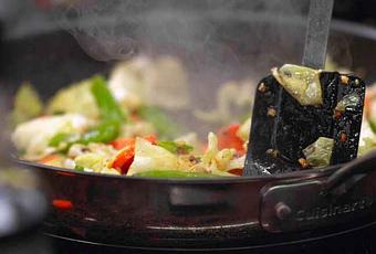 - Die Zubereitung von Speisen bedarf wenig Fett