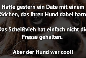 Auf Facebook teilen Vorige Folgende Hatte gestern ein Date mit einem Mädchen, das... Autor des Artikels : istdaslustig Zum Original-Artikel Hatte gestern ein Date mit einem Mädchen, das ihren Hund dabei hatte. Das Scheißvieh hat einfach nicht die Fresse gehalten. Aber der Hund war cool! Hier geht es zum Artikel Mehr Lustiges auf www.istdaslustig.de Auf Facebook teilen Vorige Folgende Das könnte Ihnen gefallen Mehr